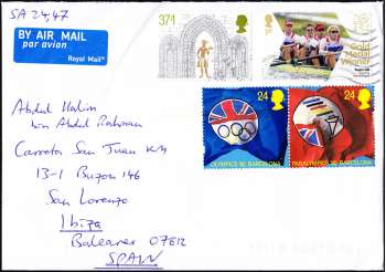 One stamp of Olympic 2012 was used with 3 other different stamps.