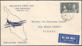 MALAYA'S FIRST DAY AIR SERVICE. JUNE 28TH. 1937 SINGAPORE — PENANG