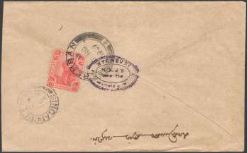 Federated Malay States - 3¢ from Seremban to Singapore (1909)