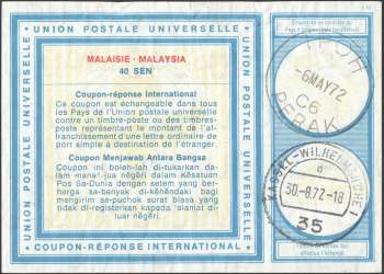 Malaysia - Coupon Menjawab Antara Bangsa (Coupon-réponse International) #Vi-19 1972 USED