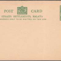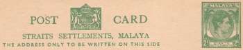 POST CARD STRAITS SETTLEMENTS, MALAYA THE ADDRESS ONLY TO BE WRITTEN ON THIS SIDE
