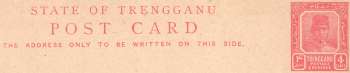 STATE OF TRENGGANU POST CARD THE ADDRESS ONLY TO BE WRITTEN ON THIS SIDE.