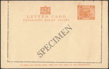 Federated Malay States - Letter Card 4¢ (1928) SPECIMEN : Very Rare Philatelic Item ★★★★★