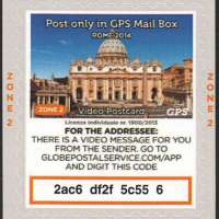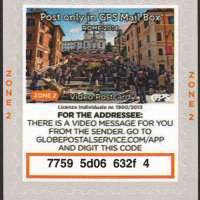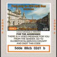 Each individual stamp bears a unique code which can be used by sender to record a video message on GPS website using a special smartphone application and receiver may view the video by entering the code at