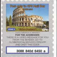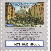 Each individual stamp bears a unique code which can be used by sender to record a video message on GPS website using a special smartphone application and receiver may view the video by entering the code at