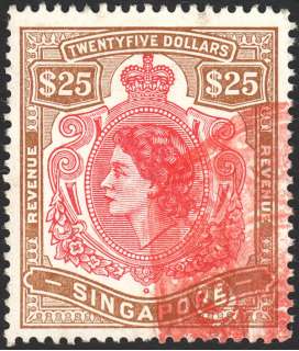 Singapore : Queen Elizabeth II - Revenue Stamp $25