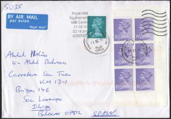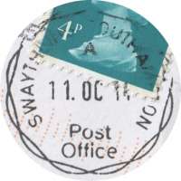 Dual cancellations, two circular postmarks handstamped, and inkjet cancellation.