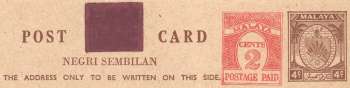 POST CARD NEGRI SEMBILAN THE ADDRESS ONLY TO BE WRITTEN ON THIS SIDE.