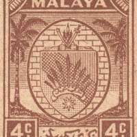 Coat-of-Arms of Straits Settlements between POST and CARD was obliterated by a brown-filled square.