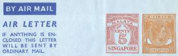 MALAYA POST PAID CENTS 5 SINGAPORE
