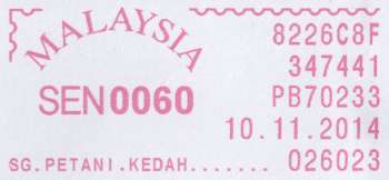 MALAYSIA SEN0060 8226C8F 3474411 PB70233 10.11.2014 SG.PETANI .KEDAH . . . . . . . 026023