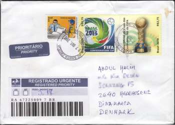 Denmark : Registered Cover from Brazil (2013)