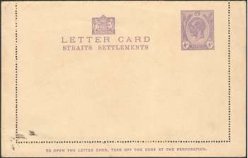 Straits Settlements : King George V - Letter Card (1928) [Quite Scarce]