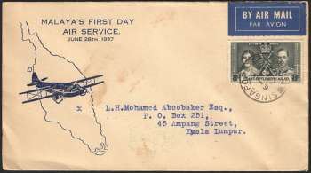 MALAYA'S FIRST DAY AIR SERVICE. JUNE 28TH. 1937 SINGAPORE — PENANG