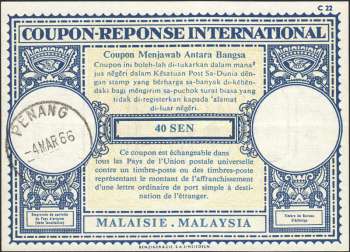 Malaysia - International Reply Coupon : London Design XVII-Au (1966) Penang