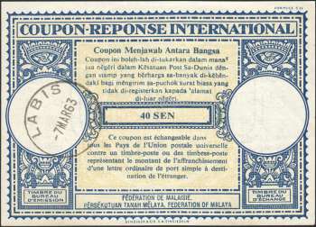 Federation of Malaya - International Reply Coupon : London Design XVI-na (1963) Labis, Johor