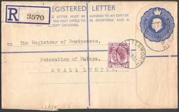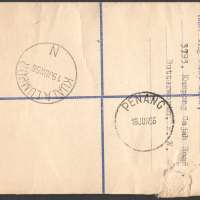 Penang, Malaya : Queen Elizabeth II : USED Prepaid Registered Envelope 20¢ + 10¢ Size G (1956)