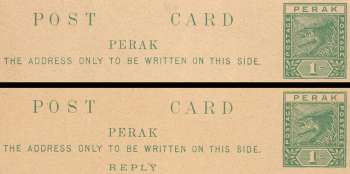 Sultanate of Perak : Postcard 1¢ + Reply 1¢ (1894)