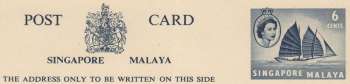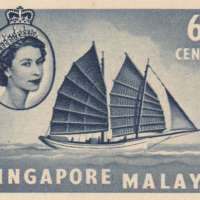 State of Singapore - Postcard of Queen Elizabeth II with Chinese Junk (1955) Cream Paper