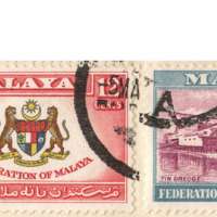 Federation of Malaya's first national stamps and first national definitive series set.