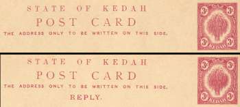 Sultanate of Kedah - Postcard : Sheaf of Reply 3¢ + 3¢ Reply (1912)