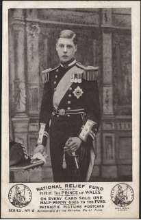 It was part of the first official National Relief Fund postcard from series 1 of the ‘authorised postcard’ series. It featured the Fund’s treasurer, H.R.H. the Prince of Wales. The prince was eager to get into khaki as soon as possible and although eventually he did, he was never allowed anywhere near the battlefronts.