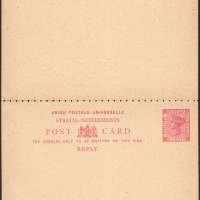 Straits Settlements - 3¢ + 3¢ Postcard (1893) Rate Increase