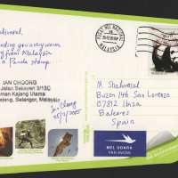 Spain - Postcard from Malaysia with Panda Stamp (2015)