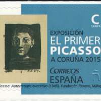 The exhibition El Primer Picasso. A Coruña 2015 (The First Picasso) provides the subject for the self-adhesive stamp commemorating the period when the painter lived in the city of A Coruña, where he began his artistic training and showed his first work in 1895.