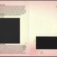 The Nyonya Kebaya first appeared only in early 20th century. These early versions featured rather simple work but later, especially from 1060s onwards, a more exquisite and intricate embroidery began to emerge. While the early Kebayas are hand sewn, the Nyonya Kebaya today is embroidered using the sewing machine with flower motives being the favourite theme. The miniature sheet features a composition of Malaysian fruit motifs with the creative use of contrasting colours. The Kebaya featured won the UNESCO Award of Excellence for Handicraft 2012.
