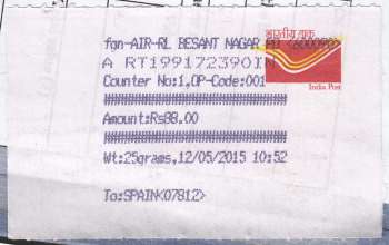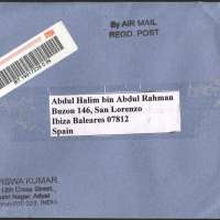 Spain - Registered Mail from India (2015) Stampless