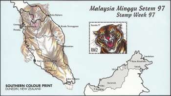 Southern Colour Print is a New Zealand Company specialised in the secure printing of stamps, books etc. They were present at the 1997 stamp week, on invitation by Pos Malaysia, to demonstrate the printing of MS. Thus, this was the design that they had come out. Very limited quantity of this miniature sheet were noted.
