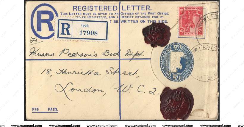 Prepaid Registered Letter from Ipoh, Perak (part of Federated Malay States) to London, England.