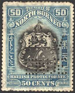 The State of North Borneo - 50¢ Perfin REVENUE (1916)