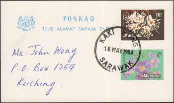 Malaysia - Postcard 10¢ + Uprated 5¢ (Used in 1984)
