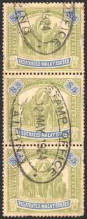 Federated Malay States - $5 Strip of 3 : Used for Revenue (1924)