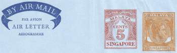 State of Singapore - Aerogram : King George VI 25¢ + Uprated 5¢ (1955)