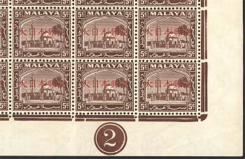 Malaya : Japanese Occupation - Selangor 5¢ overprinted 大日本郵便 : FULL SHEETLET