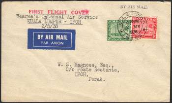 First Flight Cover to inaugurate the first passenger air services by Wearne's Air Services to include Ipoh.