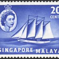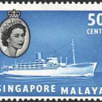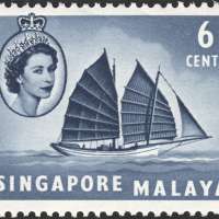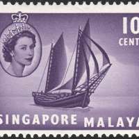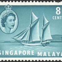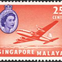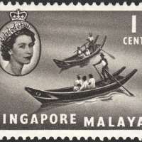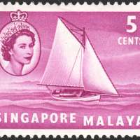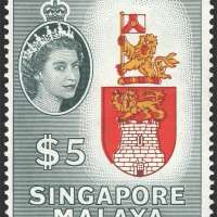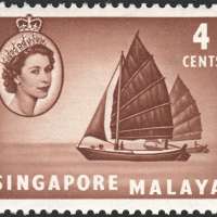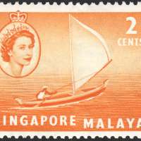 Queen Elizabeth's coronation issue produced the last common design stamp which Singapore issued together with other British Colonies. It also meant a new definitve set was needed. In fact, a new defintive set was being prepared with the King's head but the untimely passing of King George VI made it necessary to feature the next monarch - Queen Elizabeth II who graced the stamp, finally issued in 1955. This was a beautiful set featuring principally seacrafts in view of Singapore's importance as a major sea-port and trading centre. As if the designer foresaw Singapore becoming a major aviation hub twenty years later, the 25¢ value depicted an "Argonaut" aircraft. The orginal design was that of a "Comet" aircraft but the series of aircrashes involving that name of aircraft necessitated a change in design. The lower values were printed by photogravure and the three top values by the recess method. Many printing plates were used for the lower values but only two for the recess printed stamps. There were several printings which could be distinguished by the paper, shades and the intensity of the background.