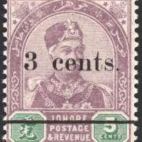 Sultanate of Johor - Sultan Abu Bakar : Surcharged Locally (1894) MH