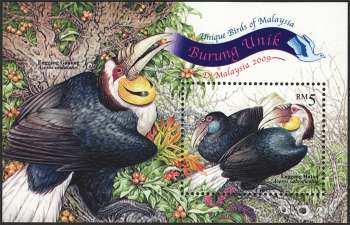 Malaysia - Unique Birds of Malaysia : Missing Country Name on the Stamp (2009)