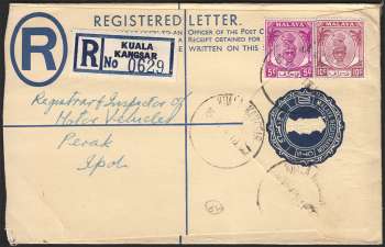 Malaya : Perak - Size G Registered Mail 20¢ + 15¢ from Kuala Kangsar to Ipoh (1954)