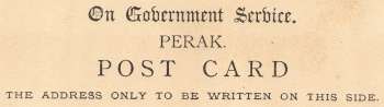Sultanate of Perak - Official Postcard : On Government Service (1892)