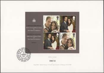 Royal Mail's issued a miniature sheet to celebrate the wedding of Prince William of Wales to Miss Catherine Middleton on 29 April.