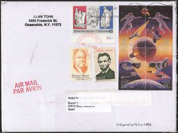 Spain - Postal Cover from USA (2015) with Russian Stamps