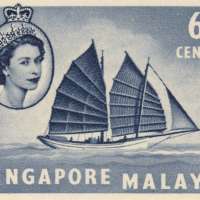 State of Singapore - Postcard of Queen Elizabeth II with Chinese Junk (1955) Cream Paper