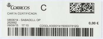Spain - National Tracking Mail (Carta Certificada Nacional) from Sabadell (2015)