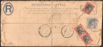 Federated Malay States - Size G 10¢ + Updated by 12¢ Used from Kuala Kangsar, Perak to India (1918)