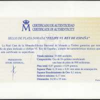 Certificate of Authenticity: gilded silver label "Felipe VI King of Spain."